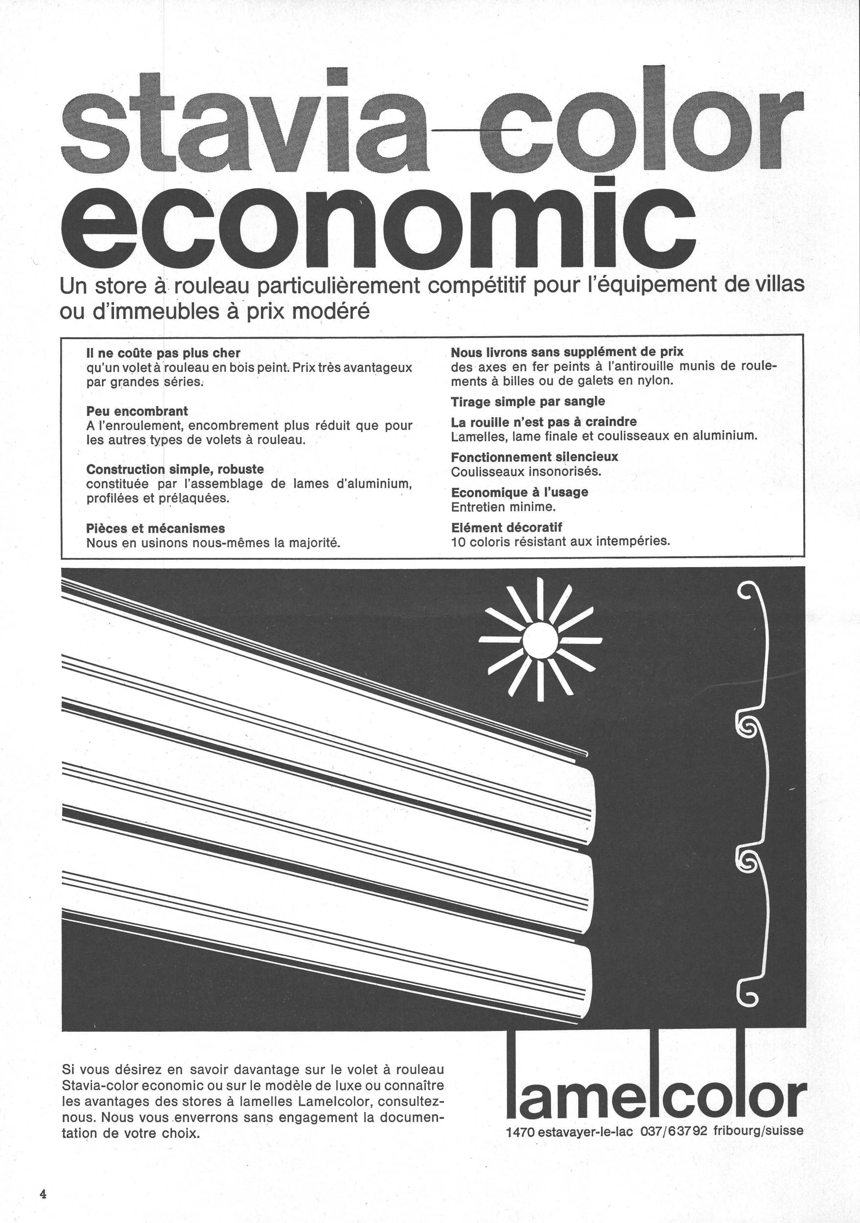 Deux mois plus tard, le premier store à lamelles 50 mm, équipé d’un système de débrayage automatique, révolutionne le marché suisse.